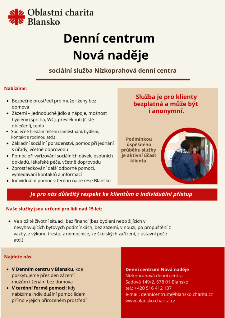 Denní centrum Nová naděje v Blansku dál poskytuje zázemí lidem bez domova, ale nově rozšířili pomoc do terénu po celém okrese Blansko