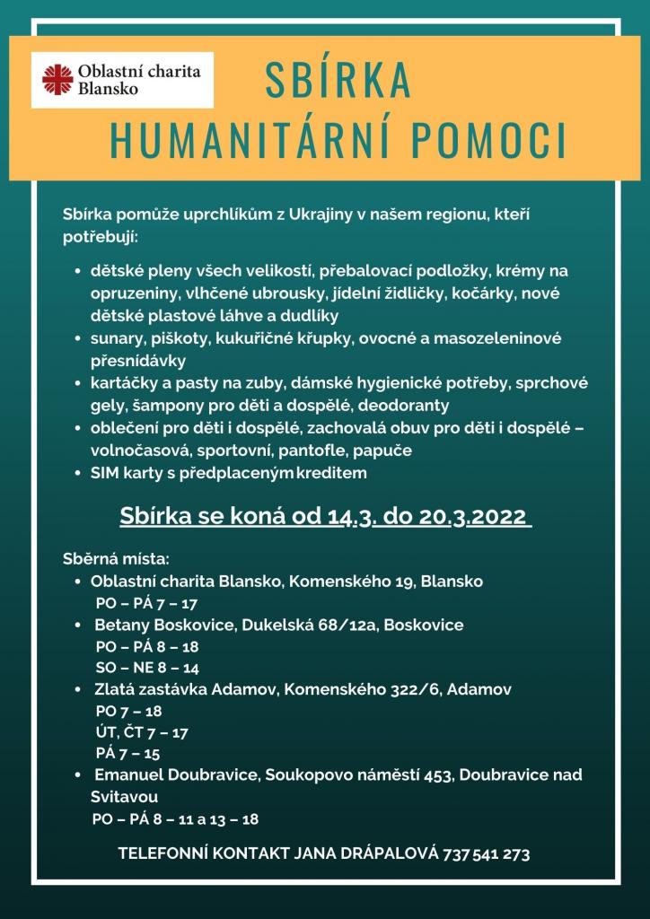 Humanitní sbírka pro uprchlíky z Ukrajiny