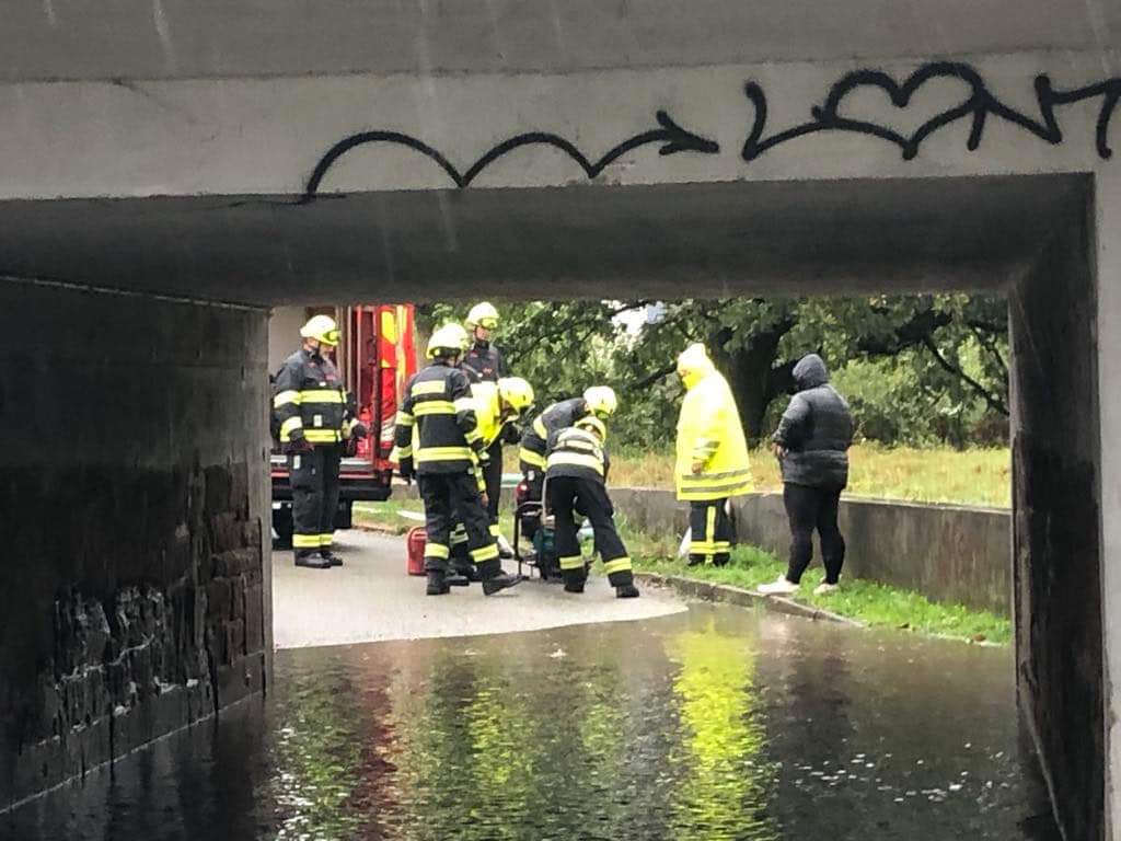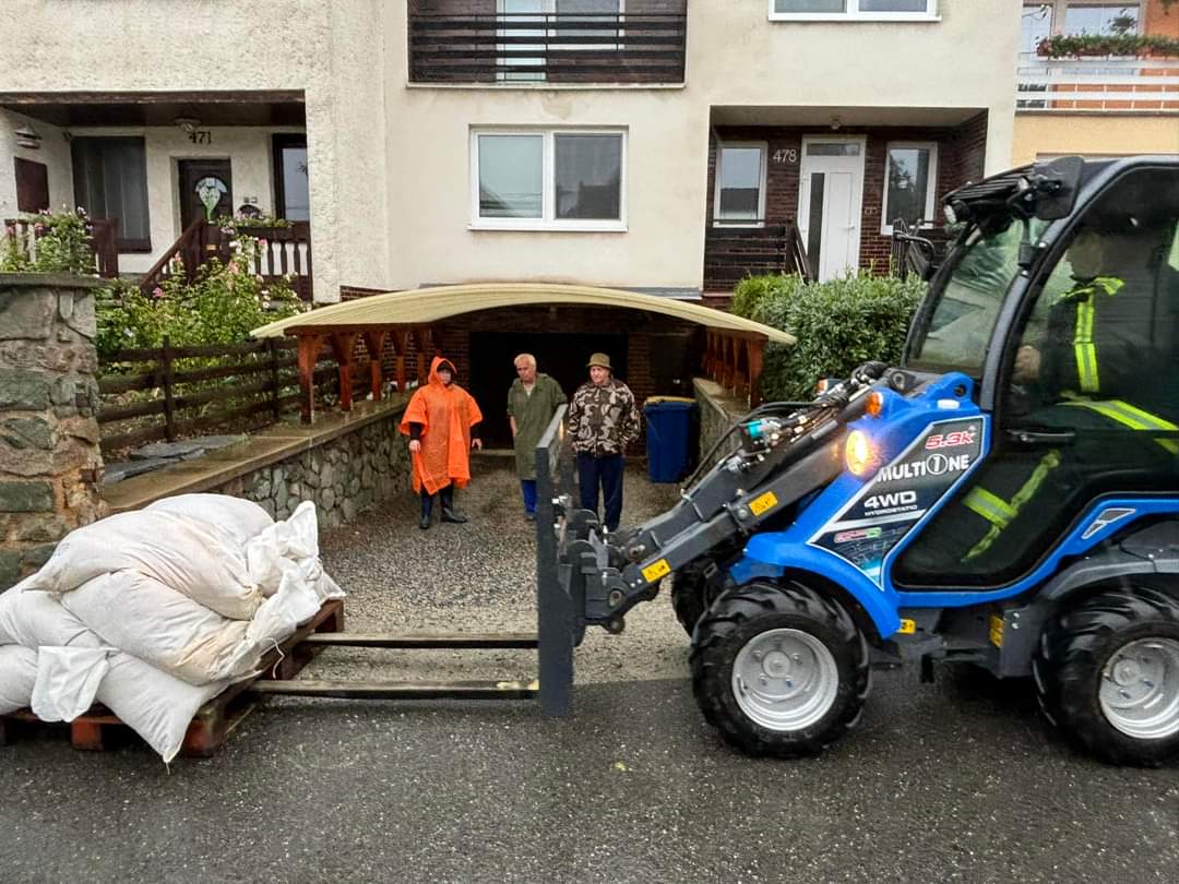 Nejprve zbudovali provizorní lávku pro pěší v podjezdu pod železnicí, následně opět plnili a rozváželi pytle s pískem našim občanům.