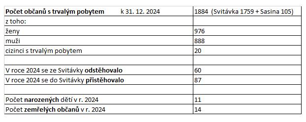 Statistika obyvatel městyse Svitávka za rok 2024 1