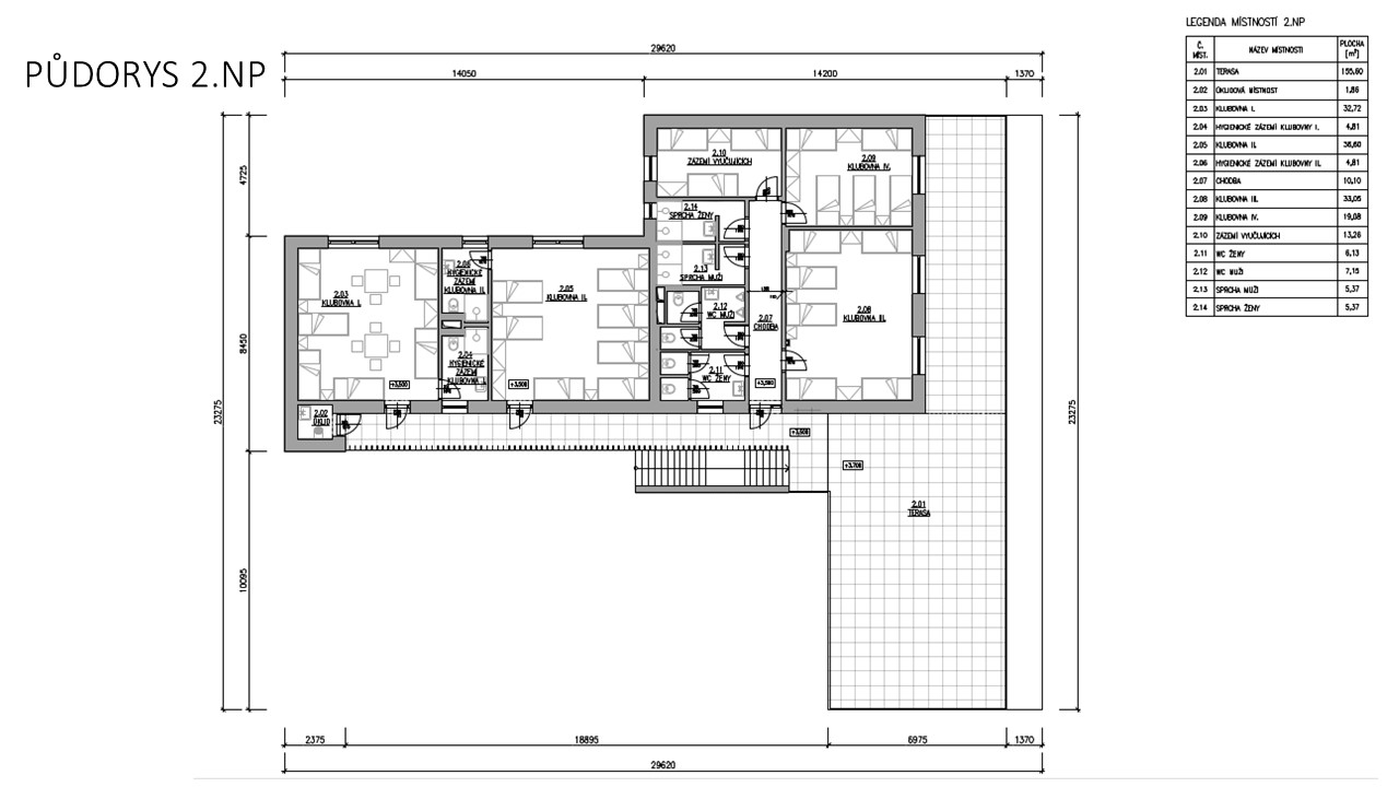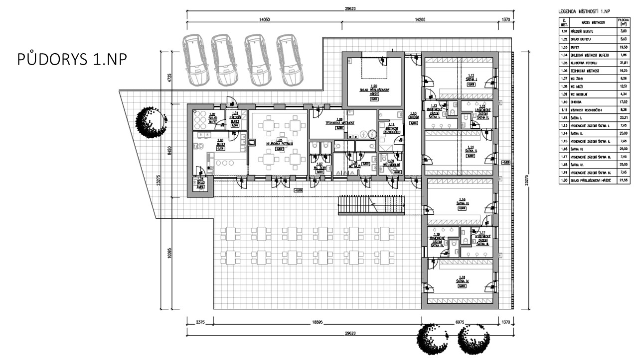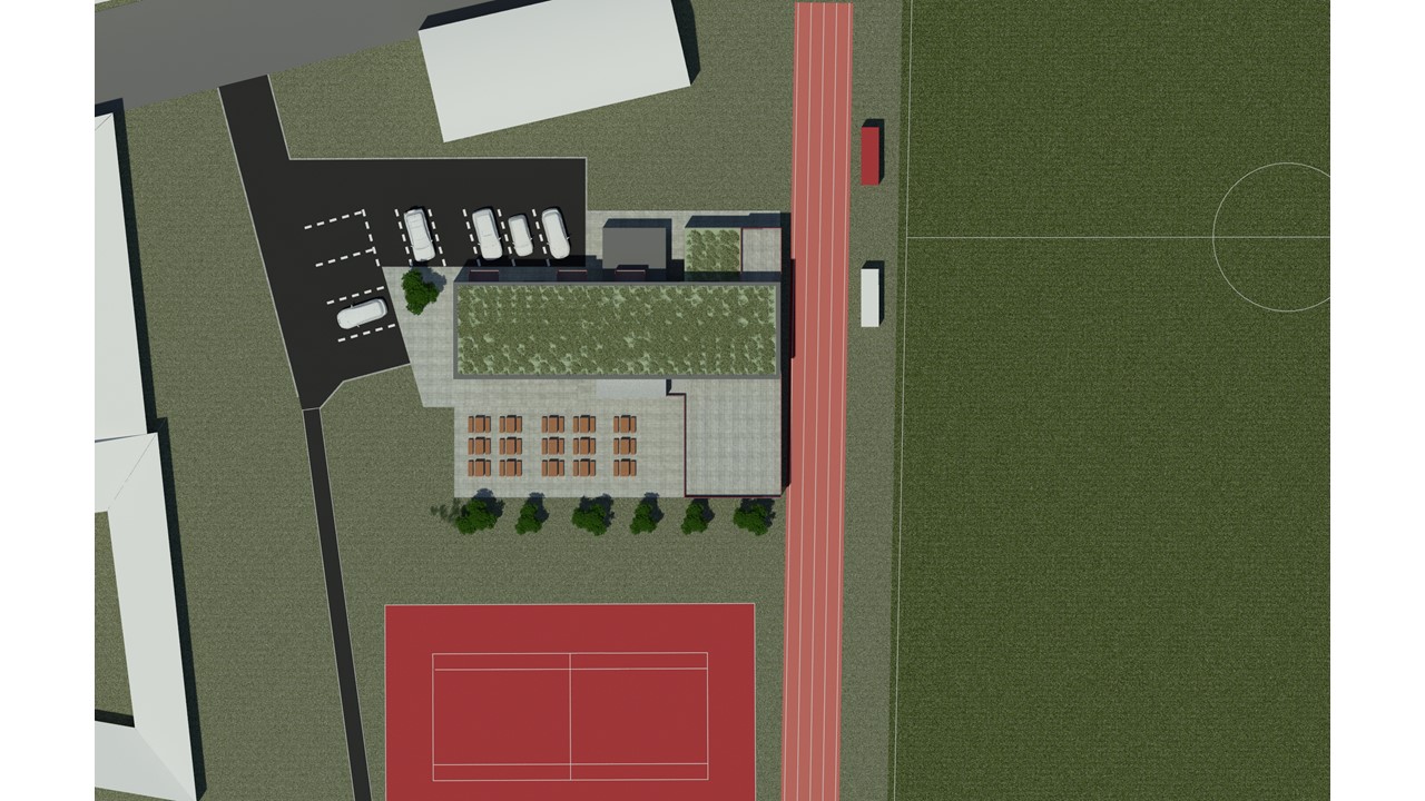 Stavba má poskytnout čtyři samostatné šatny s potřebným sociálním zázemím. Dále technickou místnost pro techniku a prodej občerstvení. V horním patře by mělo vzniknout ubytování, které bude sloužit především sportovcům využívajícím sportovní halu během soustředění či turnajů, aby měli možnost zde přenocovat. Součástí projektu je také ochoz s přístupem pro fanoušky, kteří budou moci sledovat fotbalová utkání z výšky.