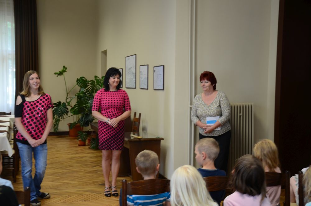 Prvňáčci dostali pamětní list, knihu, průkazku do knihovny a malý dárek a s přáním krásných prázdnin se ještě šli podívat, kde že se ty dětské knížky půjčují.