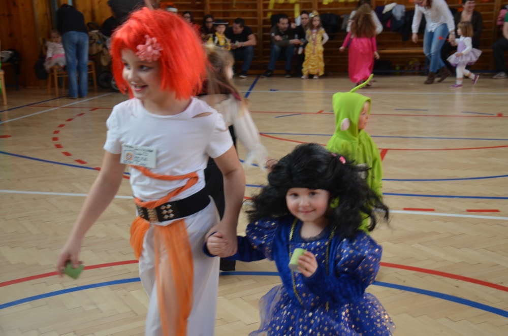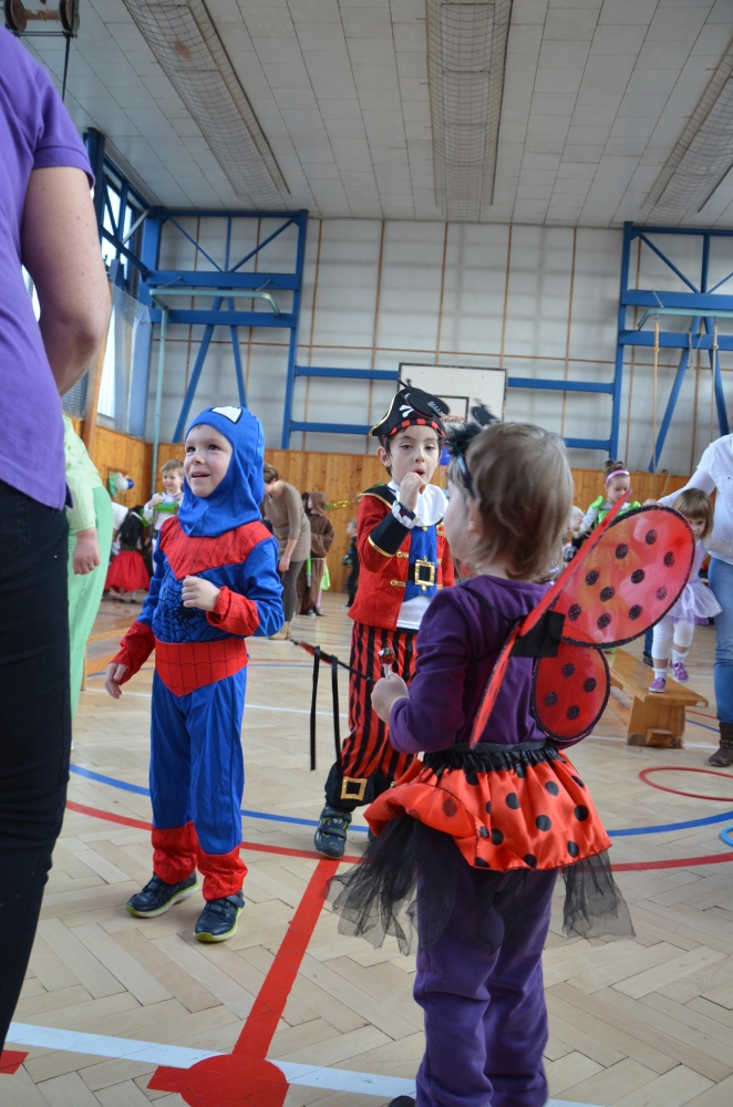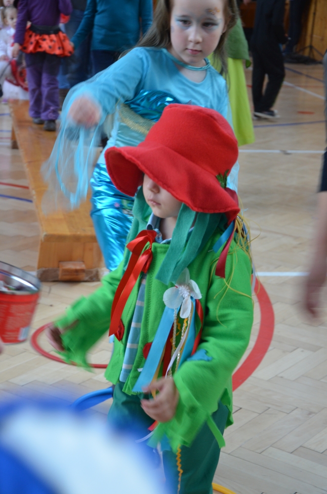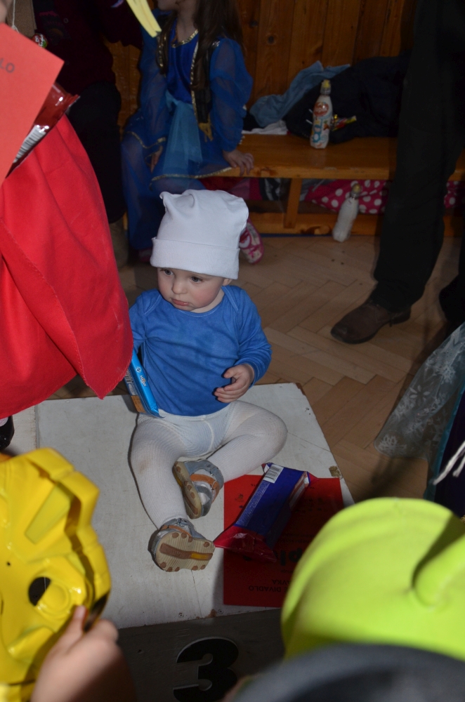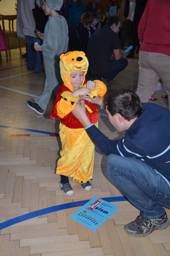 Kde jinde, než na karnevale, se mohou potkat princezny, víly, bílá paní, teletubbies, Yoda, vodník, maková panenka, mimoni a další a další postavičky? Společně pak plnily různé záludné úkoly. S vodníky suchou nohou zdolávali rybník přes "kamení a lávku", tahali velkou řepu, s drakem prošli promenádu v maskách, s kouzelníkem se proměnili v různá zvířátka, s Křemílkem a Vochomůrkou pak přenášeli náklad z místa na místo. Sněhulák nás naučil krásnou básničku a písničku. Nakonec nemohla chybět pořádná koulovačka, byť jen s papírovými koulemi.