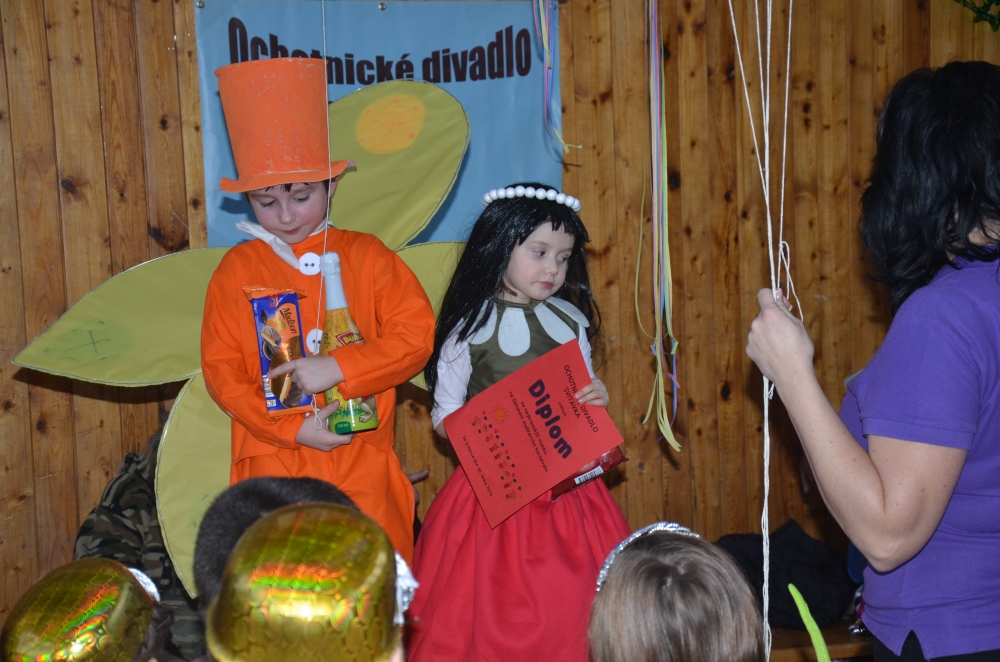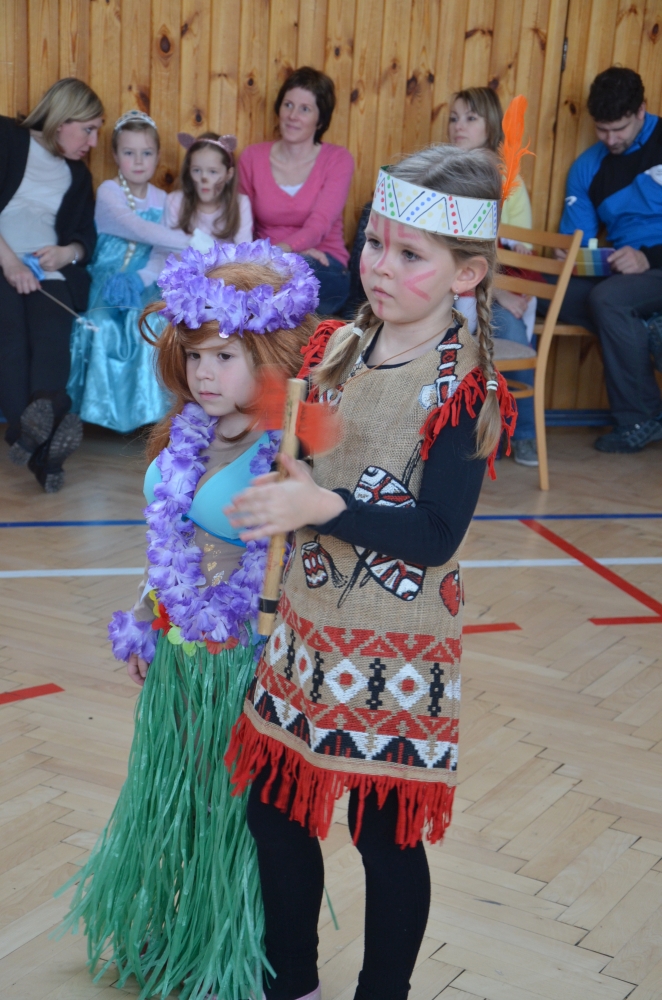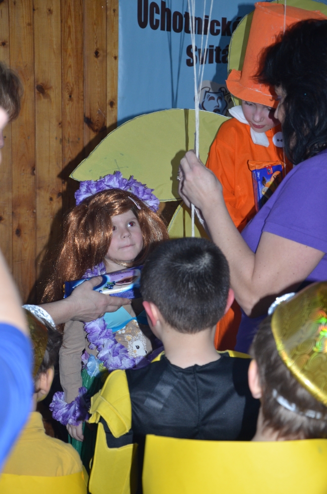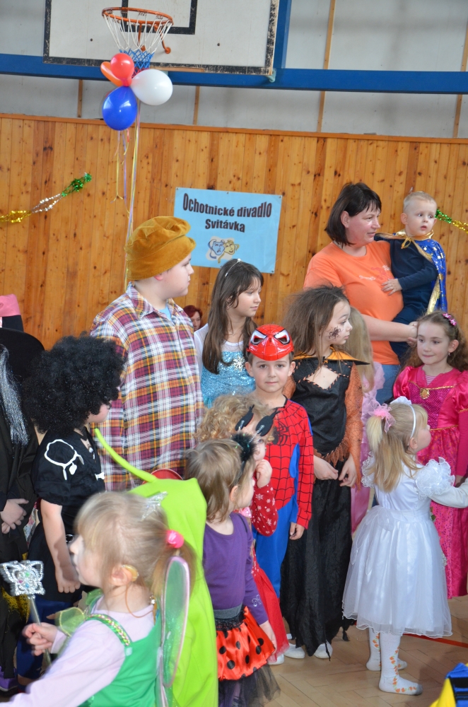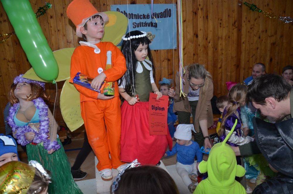 Kde jinde, než na karnevale, se mohou potkat princezny, víly, bílá paní, teletubbies, Yoda, vodník, maková panenka, mimoni a další a další postavičky? Společně pak plnily různé záludné úkoly. S vodníky suchou nohou zdolávali rybník přes "kamení a lávku", tahali velkou řepu, s drakem prošli promenádu v maskách, s kouzelníkem se proměnili v různá zvířátka, s Křemílkem a Vochomůrkou pak přenášeli náklad z místa na místo. Sněhulák nás naučil krásnou básničku a písničku. Nakonec nemohla chybět pořádná koulovačka, byť jen s papírovými koulemi.
