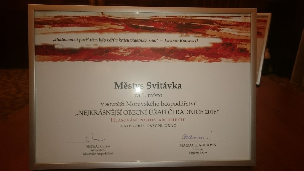 Vítězové byli vyhlášení ve čtvrtek 24. listopadu 2016 na závěr konference Moravská města a obce 2016 v hotelu Voroněž Brno. Cenu si zde převzalo vedení městyse: starosta Jaroslav Zoubek a místostarostka Miroslava Holasová.