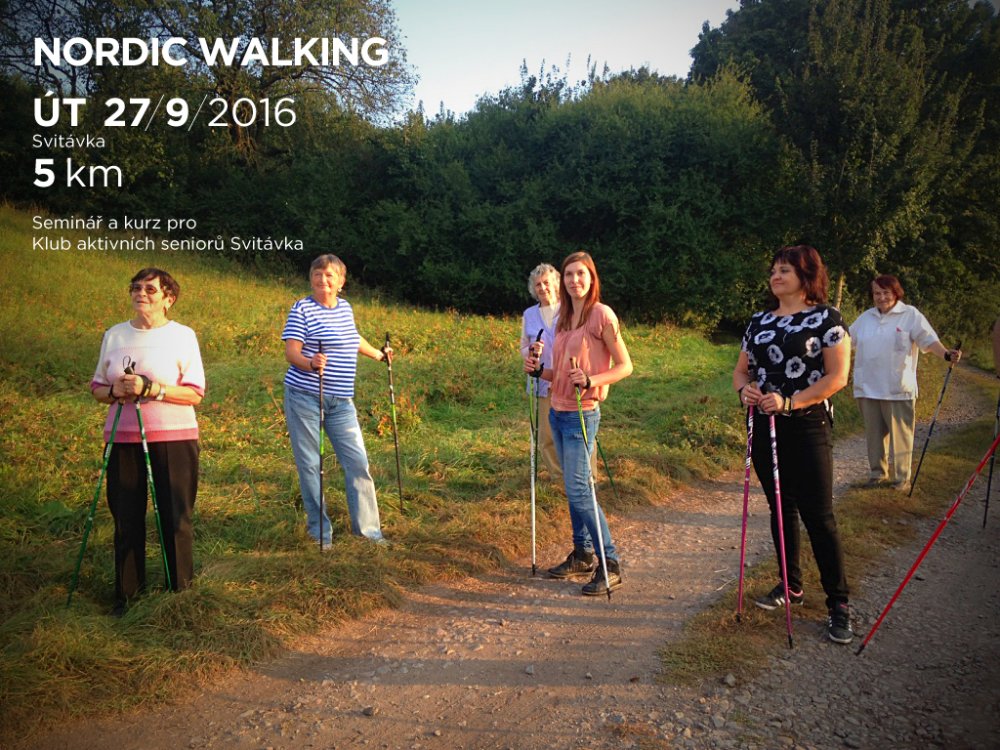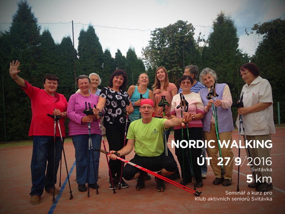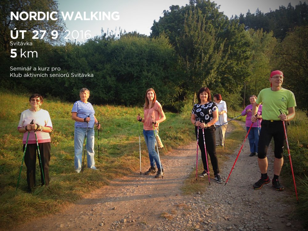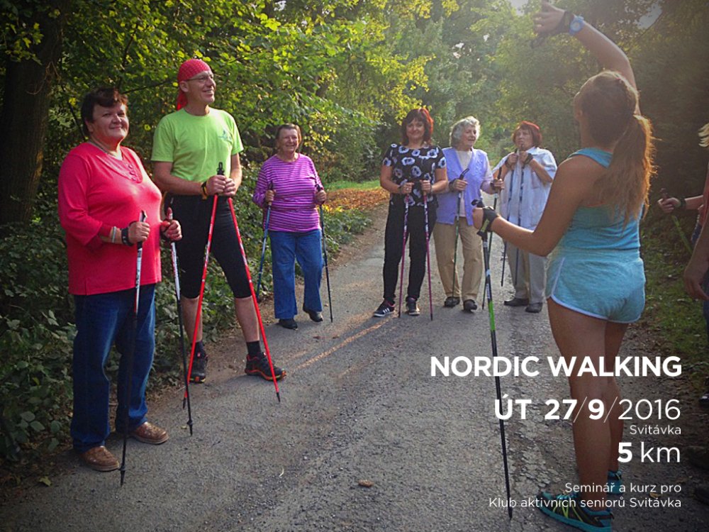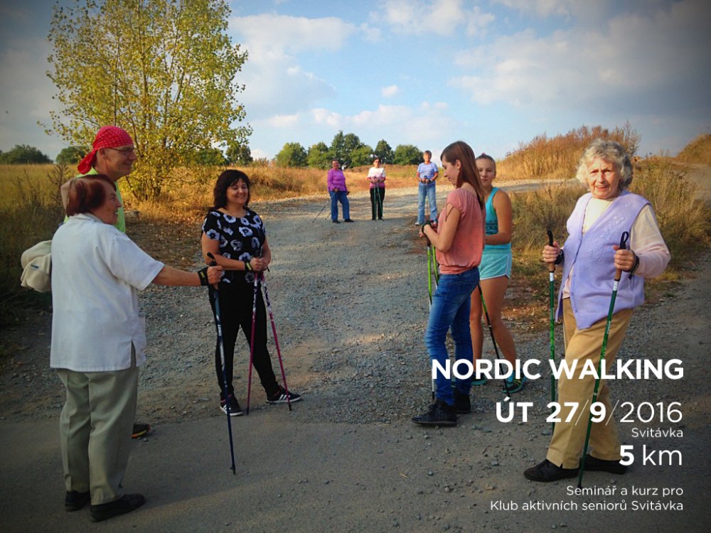Kurz byl rozdělen na 2 části. Nejdříve jsme se v klubovně DPS sešli, abychom se o této disciplíně dozvěděli zajímavé informace - o jejím vzniku, správné technice chůze, jejích výhodách a rozdílech oproti běžné chůzi. Poté jsme na dvoře absolvovali „základní výcvik“ a malou rozcvičku na rozehřátí svalů. Nyní již nic nebránilo tomu, abychom mohli směle vyrazit do terénu. Od DPS jsme šli směrem „na skalka“, dále po polní cestě a po louce jsme dorazili k chatám u koupaliště a pokračovali směrem k „salaši“ a na hradisko. Odtud jsme již zase seběhli zpět k DPS. Díky skvěle naplánované trase jsme si tak vyzkoušeli chůzi po asfaltu, v terénu, do kopce i z kopce. Na závěr nesmělo chybět malé protažení svalů a již přišlo loučení. Zúčastnění si kromě nových zkušeností odnesli i malý dárek od lektorů. Počasí nám přálo, akce se zdařila, cestou nechyběl smysl pro humor a o zábavu nebyla nouze i při malé hře během odpočinku.