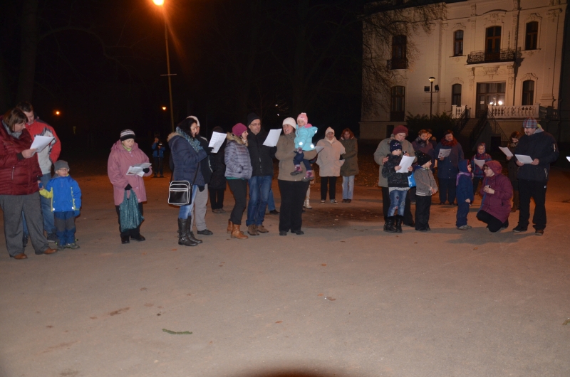 Adventní setkání v parku městyse v rámci celorepublikové akce spojené se zpěvem vánočních koled.