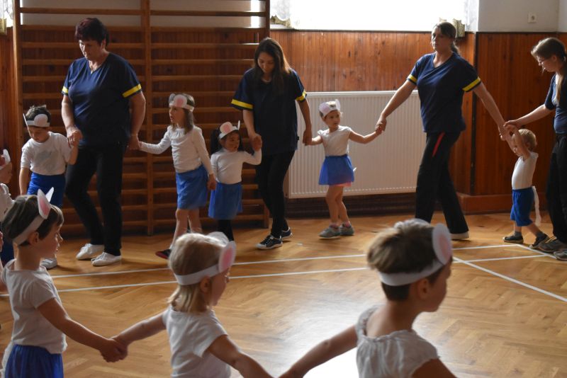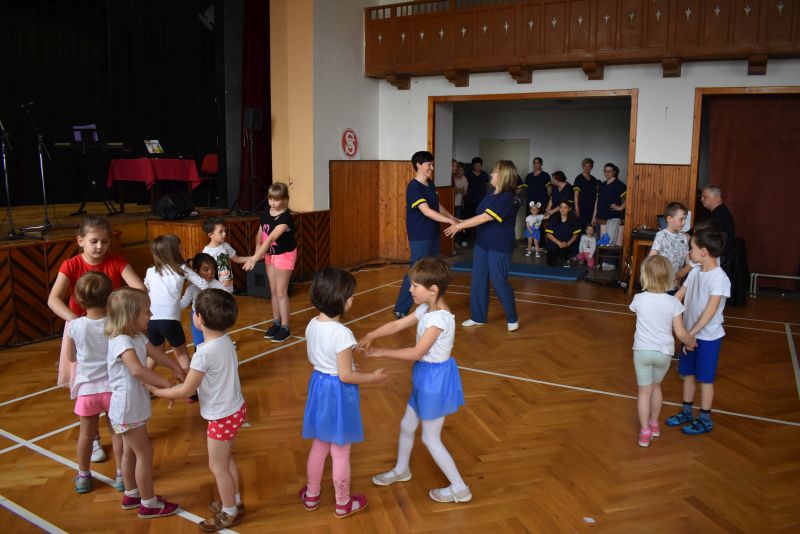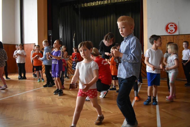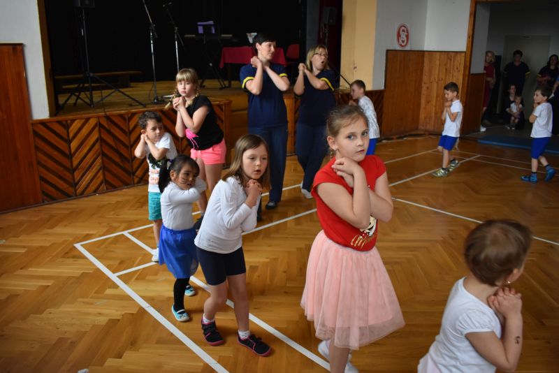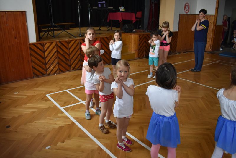 pohybové sestavy. Malí cvičenci byli odměněni velkým potleskem.