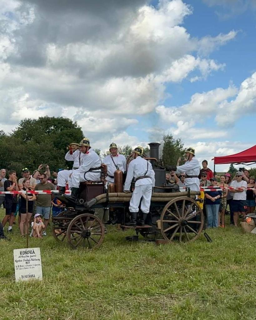 Ve dnech 9.-11.8.2024 se naši Hasiči zúčastnili akce Drahany 1945, kde ukázali historickou parní stříkačku. Předvedli i ukázku co dokáže zapálený olej.