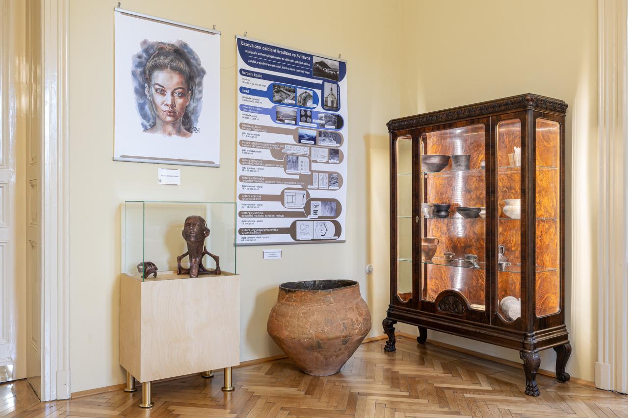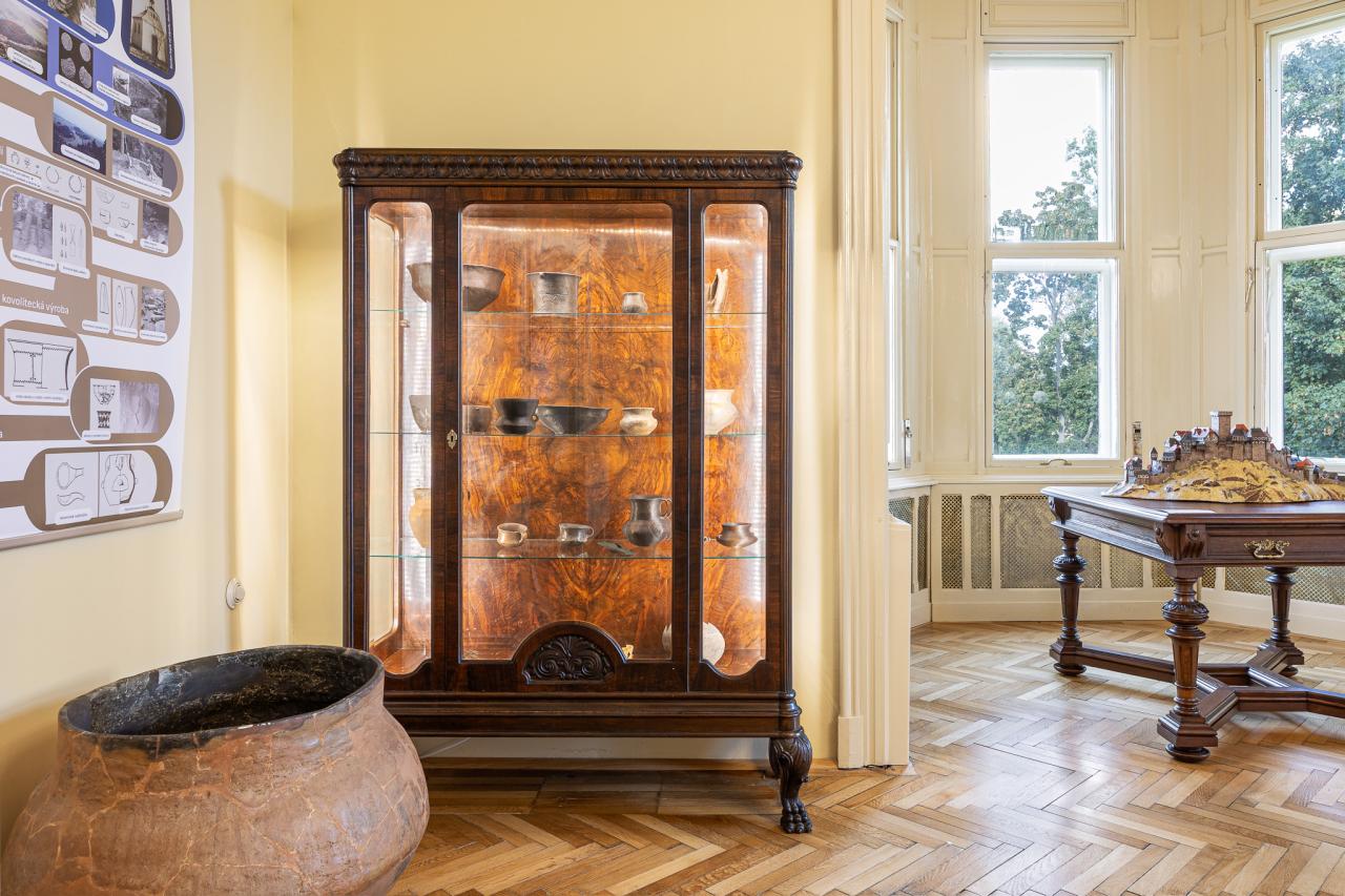 Muzeum se nachází v rohovém pokoji členěném vysokými dveřmi a okny se zachovalým kováním. V čele pokoje je arkýř s dřevěným obložením v barvě slonové kosti. Zrestaurované původní parkety se lehce vlní a dodávají prostoru na autentičnosti. Na stěnách jsou nové omítky a výmalba, objekt je samozřejmě památkově chráněný, a tak jsem vymýšlela, jak s poměrně omezeným rozpočtem a s minimem zásahů do stěn vytvořit zajímavou expozici.