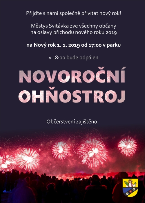 Městys Svitávka zve všechny občany na oslavy příchodu nového roku 2019.